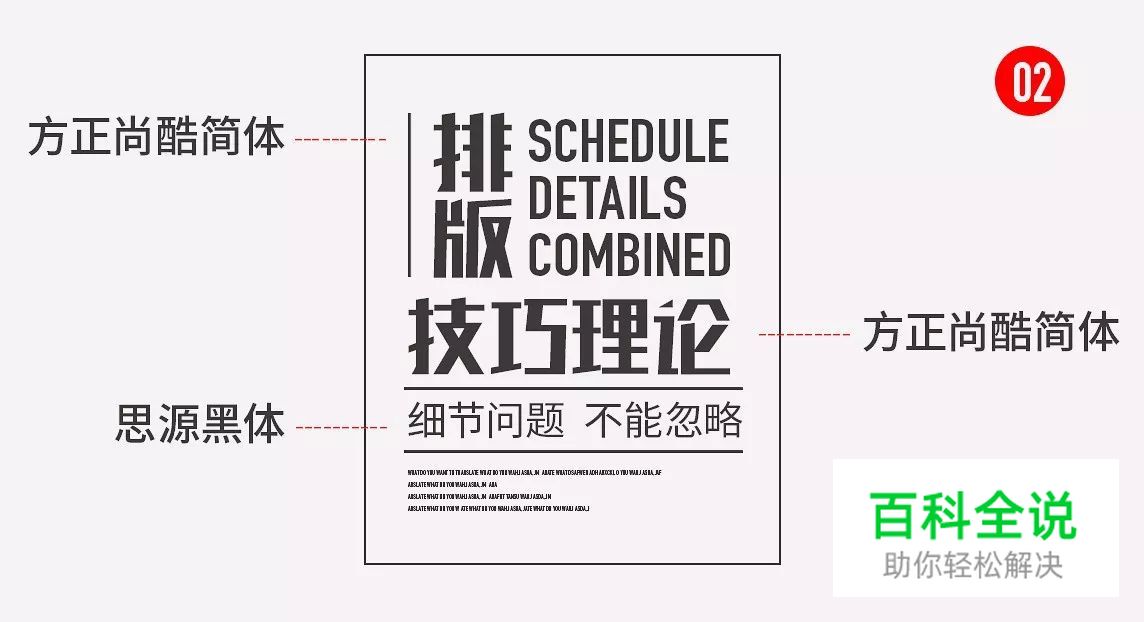 这个文字组合,分别用到了四种不同的中文字体,这对于整个文字排版区域有多大的影响?我把这组字体排版所用的文字删减为两种,看下整体的效果;