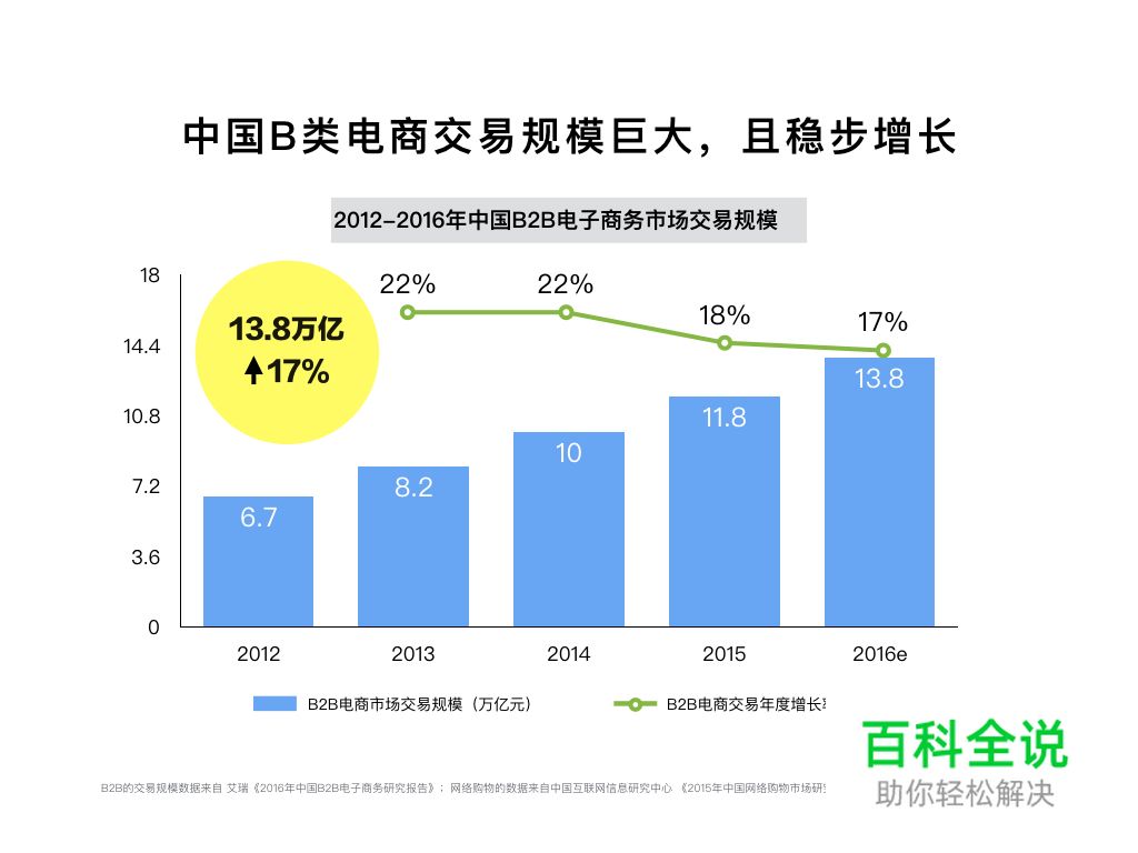 互联网咨询机构iResearch的《2016年中国B2B电子商务研究报告》内容指出: