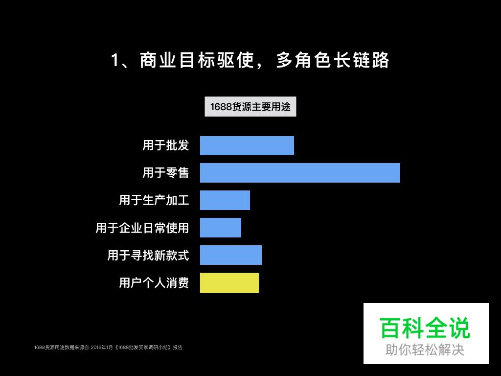 用户在1688平台上采购批发货源的以商业目的的消耗为主,较少用于个人消费。