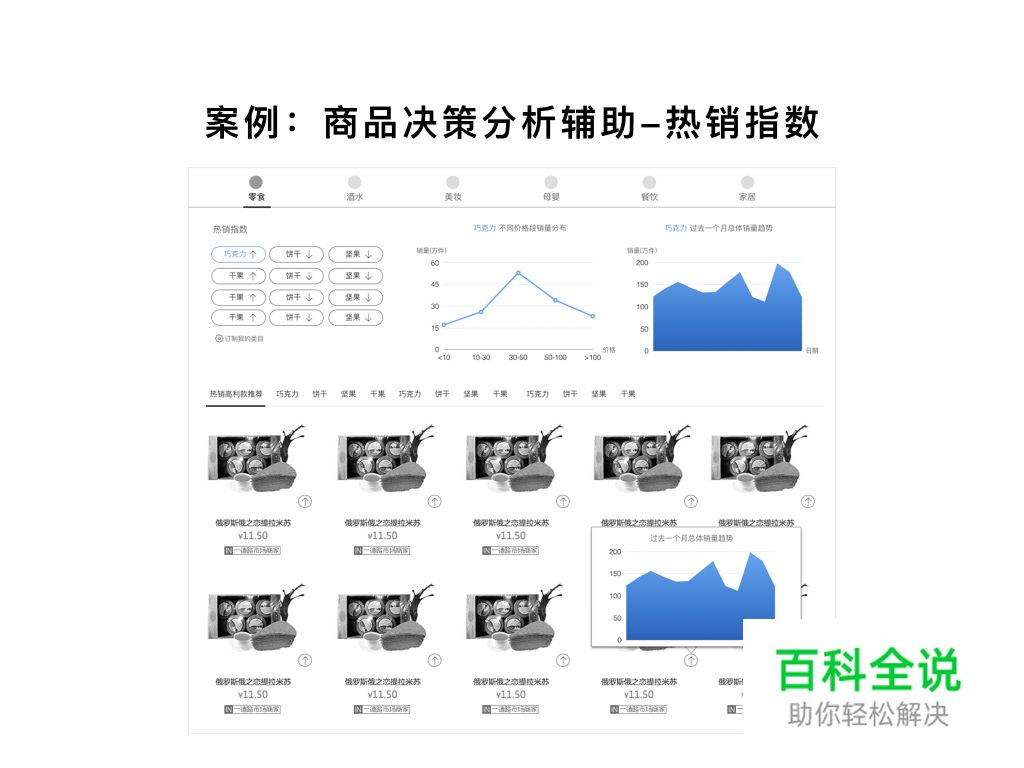 针对B类电商买家购买决策由利润趋动的特点,我们在用户浏览商品详情时,提供了淘宝零售利润、零售价格区间、淘宝销量及在售淘宝店铺等可视化数据信息,辅助用户预估采购该商品的商业利润并进行销售预判。
