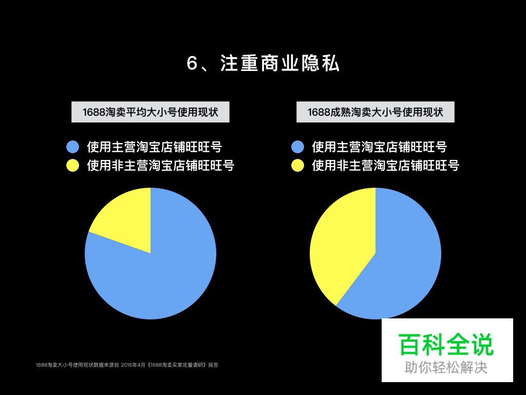 类淘卖用户存在使用大小号情况。另一方面,商业机密涉及到的一个集体,一旦泄露,可能会带来无法估计的利益损失或者名誉损失。因此,B类电商买家注重商业隐私的保护,避免在商业竞争中处于下风。