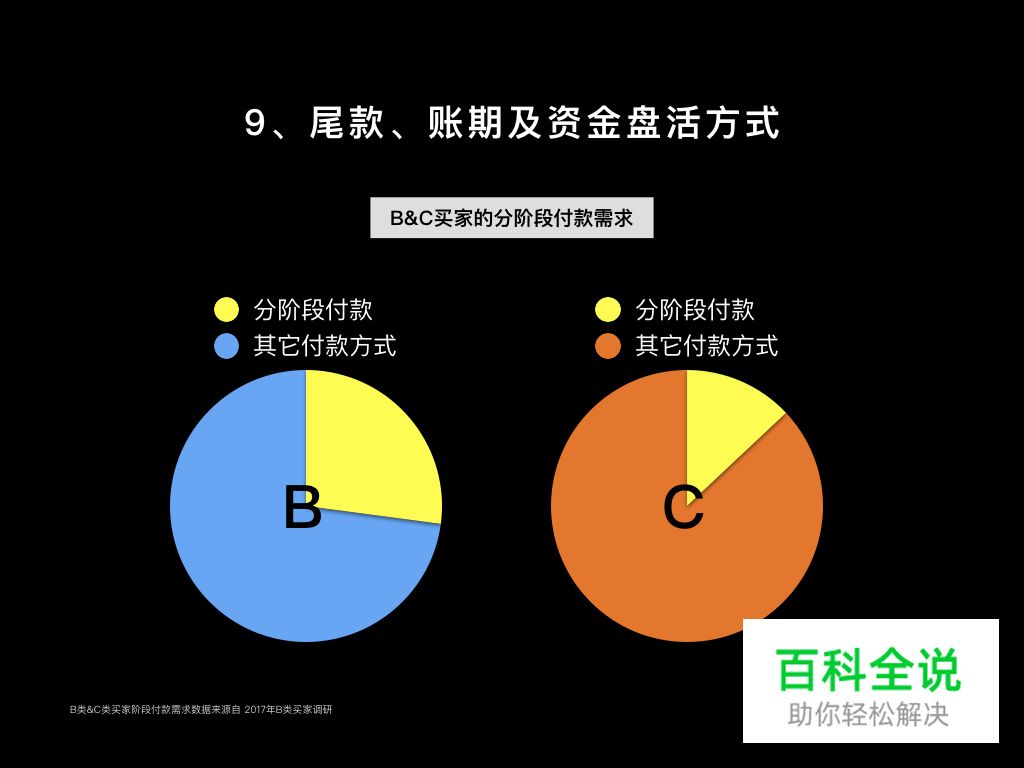 B类电商买家比起C类电商买家更倾向于使用分阶段付款。实际上,尾款、账期及信用交易等金融方式在B类电商交易过程中非常普遍。商业上,toB就是选择提升自己的资金周转率来实现规模化盈利,toC则是选择提高利润率来实现盈利。